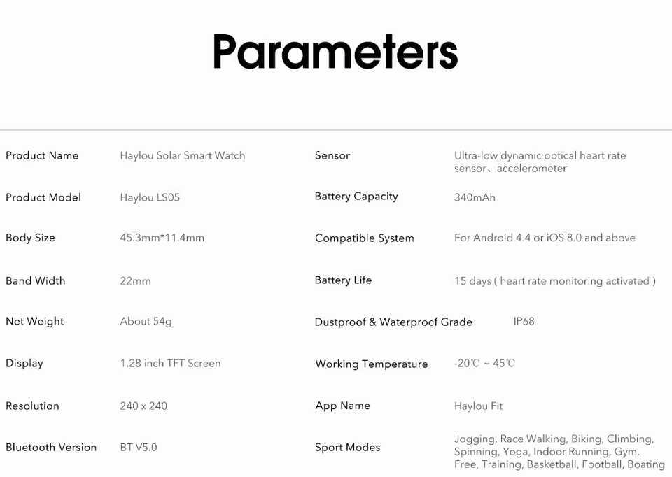 ชื่อผลิตภัณฑ์:Haylou นาฬิกาอัจฉริยะ LS05พลังงานแสงอาทิตย์