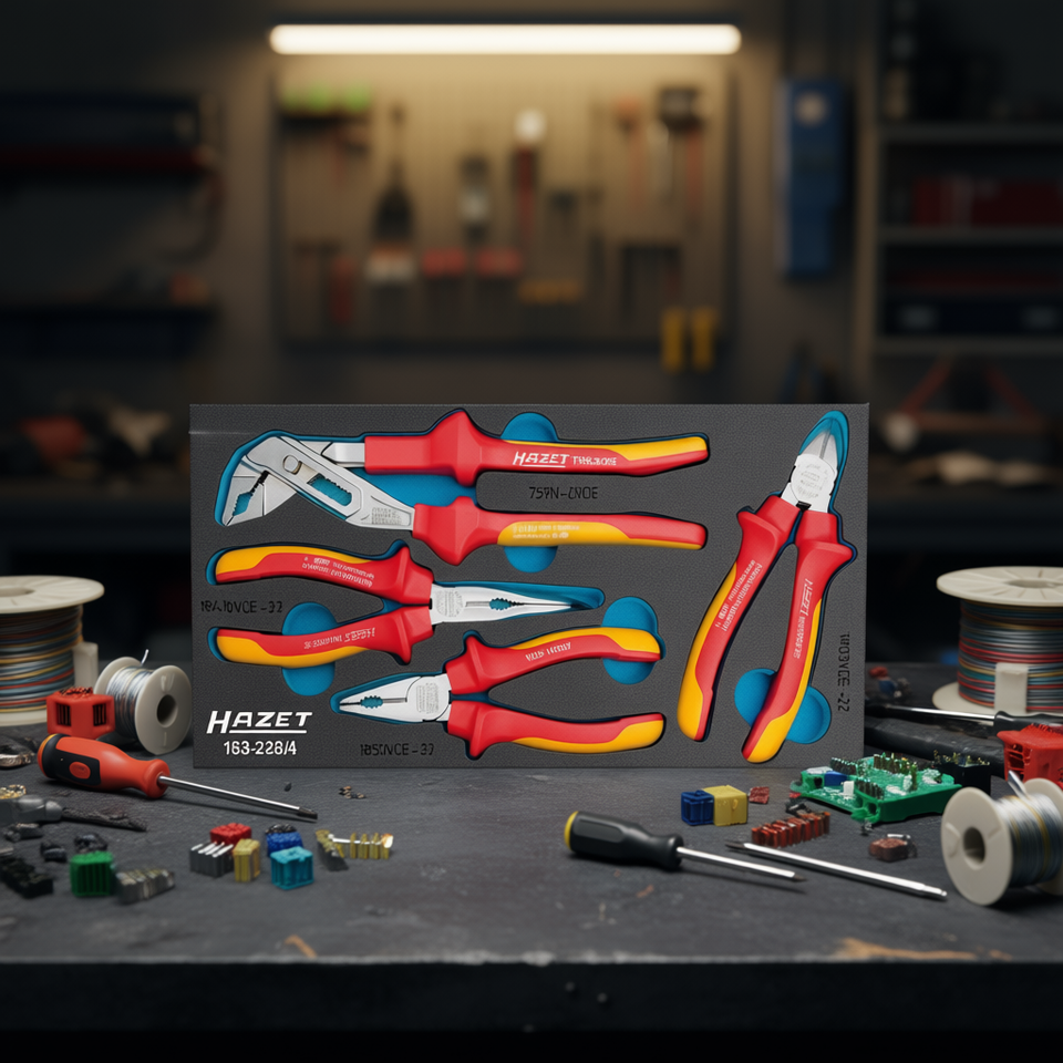 ชุดคีมและคัตเตอร์ฉนวนป้องกันไฟฟ้า Hazet 1000V ชุด 4 ชิ้น