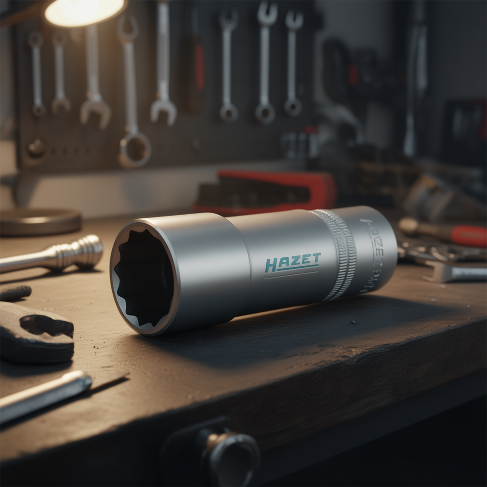 ประแจหกเหลี่ยมยาว Hazet 12 จุด ขนาด 1/2 นิ้ว พร้อมลายกันลื่นและลายกันลื่นแบบ Knurling