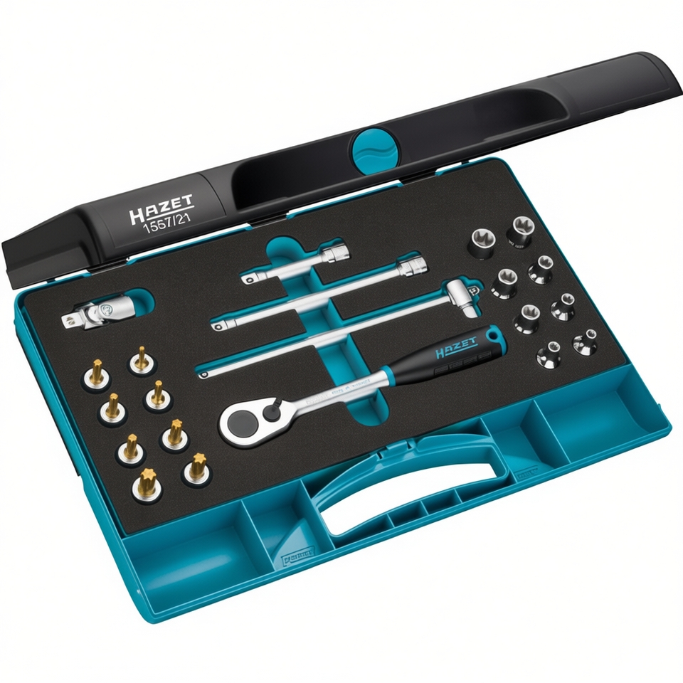 ชุดเครื่องมือ Hazet 21 ชิ้น ชุดประแจ TORX พร้อมด้ามขันแบบ Ratchet และอุปกรณ์เสริม