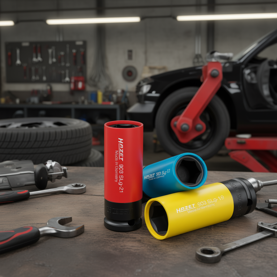 ชุดประแจบล็อกหกเหลี่ยมยาว 3 ชิ้น ขนาด 1/2 นิ้ว ยี่ห้อ Hazet พร้อมลายกันลื่นสำหรับติดตั้งและถอดล้อ