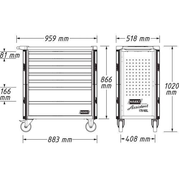 รถเข็นเครื่องมือช่าง Hazet พร้อมลิ้นชัก 8 ช่อง และชุดเครื่องมือ 317 ชิ้น