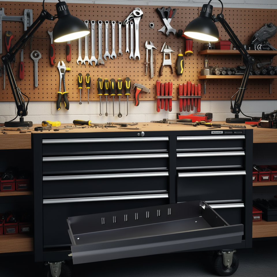รางนำลูกปืน Hazet สำหรับรถเข็นเครื่องมือ พร้อมลิ้นชักแบบแบนในตู้เก็บเครื่องมือ