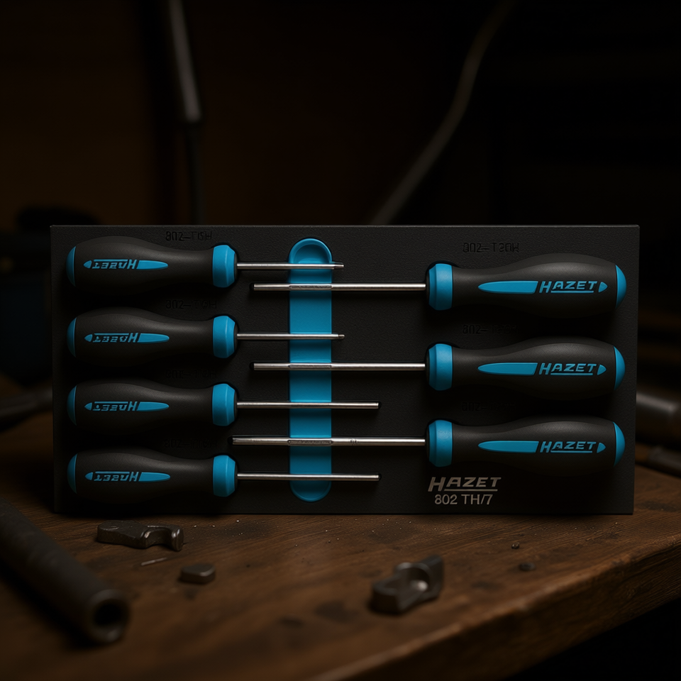 ชุดไขควง Hazet HEXAnamic TORX ป้องกันการงัดแงะ พร้อมด้ามจับ 3 ส่วน (7 ชิ้น)
