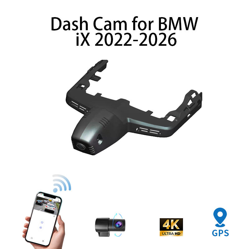 กล้องติดรถยนต์ HD 4K สำหรับ BMW IX ปี 2022-2026 พร้อมเลนส์บันทึกภาพหน้า-หลังสองตัว ระบบ GPS แบบเสียบใช้งานได้ทันที
