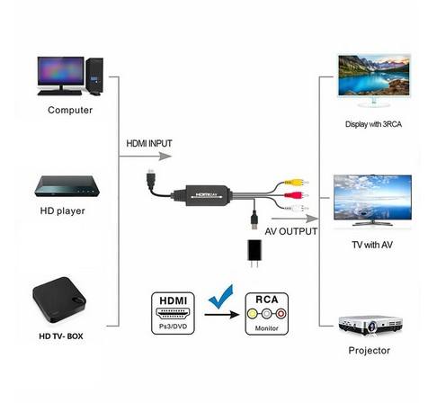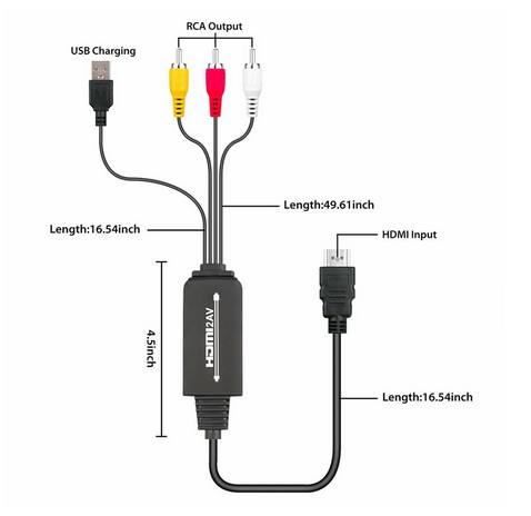 สายแปลง HDMI เป็น 3 RCA AV วิดีโอ เสียง สำหรับโทรทัศน์ ตัวแปลง VHS VCR DVD เครื่องบันทึก อะแดปเตอร์
