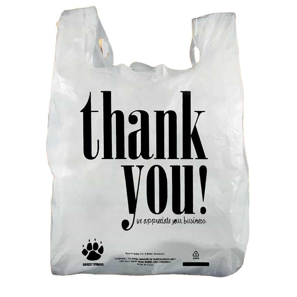 ถุงพลาสติกสำหรับใส่ของในซูเปอร์มาร์เก็ตเสื้อยืดขอบคุณสำหรับช้อปปิ้ง