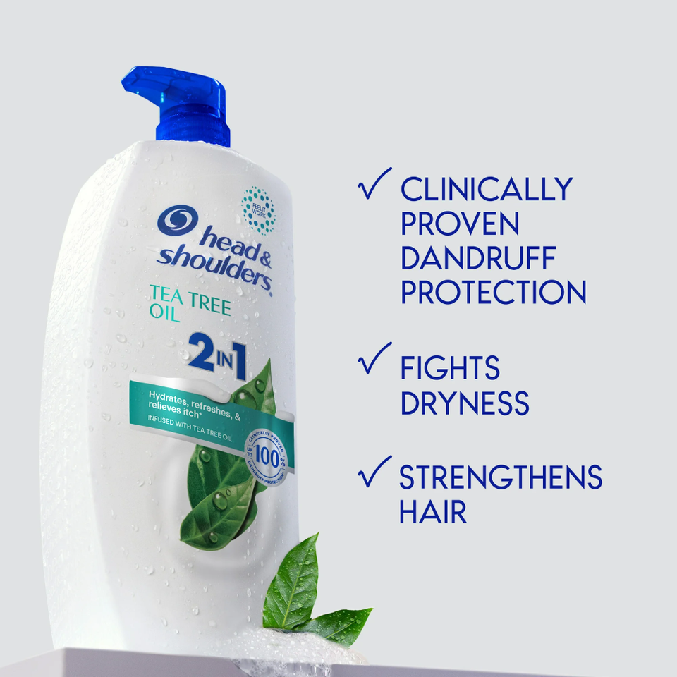 เฮดแอนด์โชว์เดอร์ แชมพูและครีมนวดผมสูตรทีทรีออยล์ 2-in-1 แพ็ค 4 ขวด ขนาด 28.2 ออนซ์ บำรุงและเพิ่มความชุ่มชื้น ลดรังแค