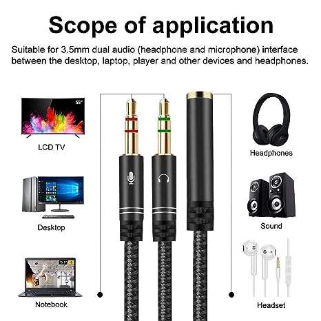ตัวแยกหูฟัง3.5มม. ตัวแยกชุดหูฟังสำหรับเล่นเกมพร้อมแจ็คไมโครโฟนแยกเสียง