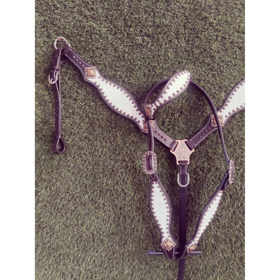 ชุดอุปกรณ์ขี่ม้าแบบตะวันตกจากอาร์เจนตินา ทำจากหนังวัวแท้ ประดับด้วยพลอยเทอร์ควอยซ์ ประกอบด้วยบังเหียนและสายรัดอก ขายส่งแบบ OEM