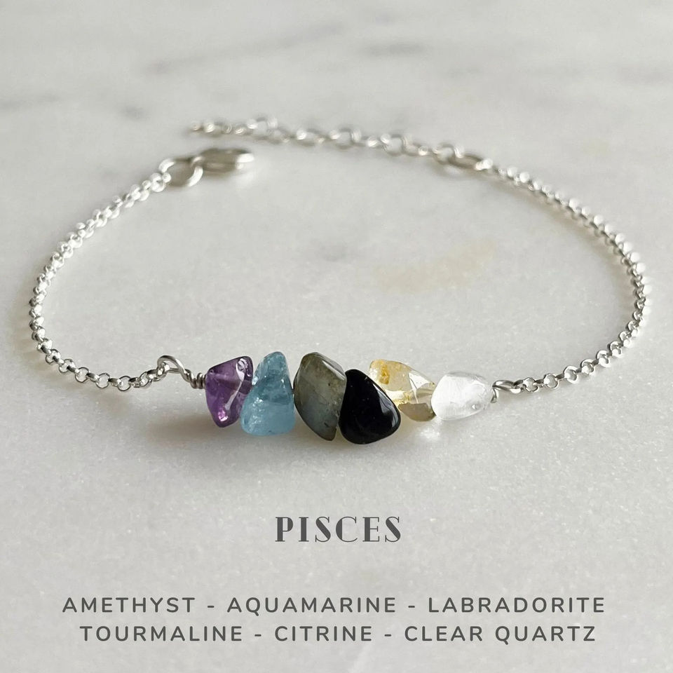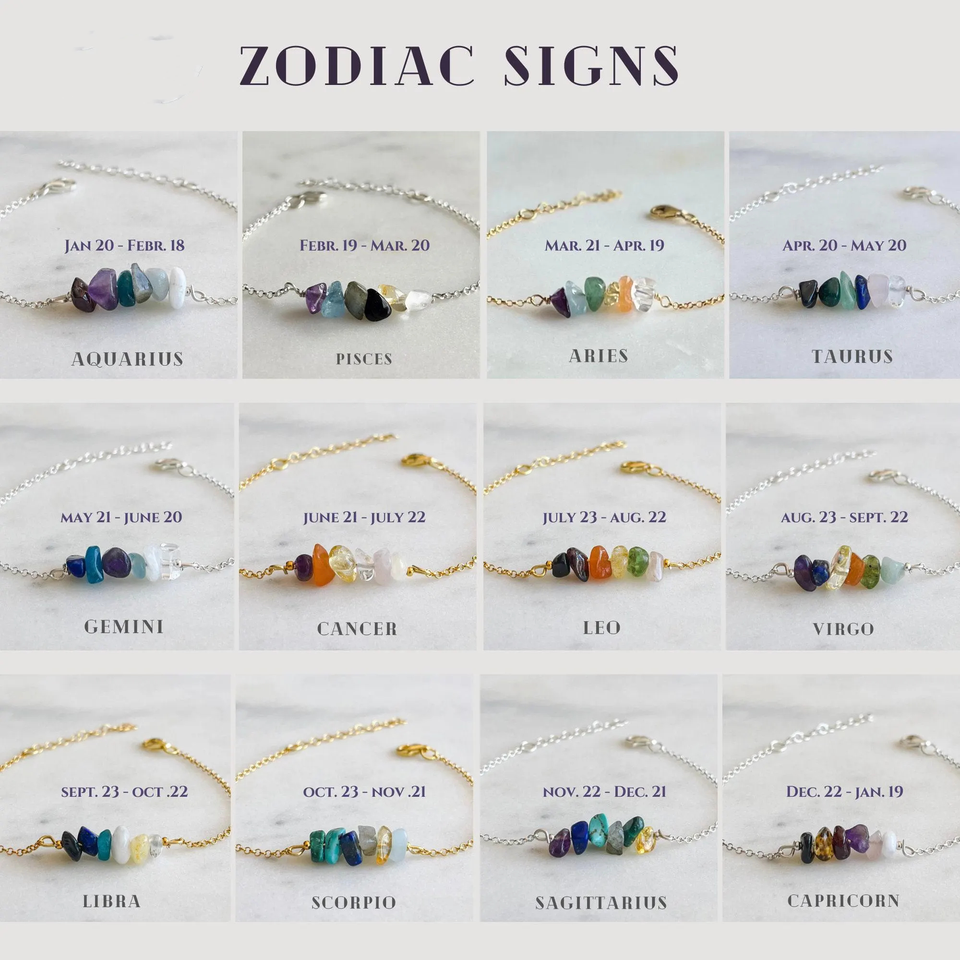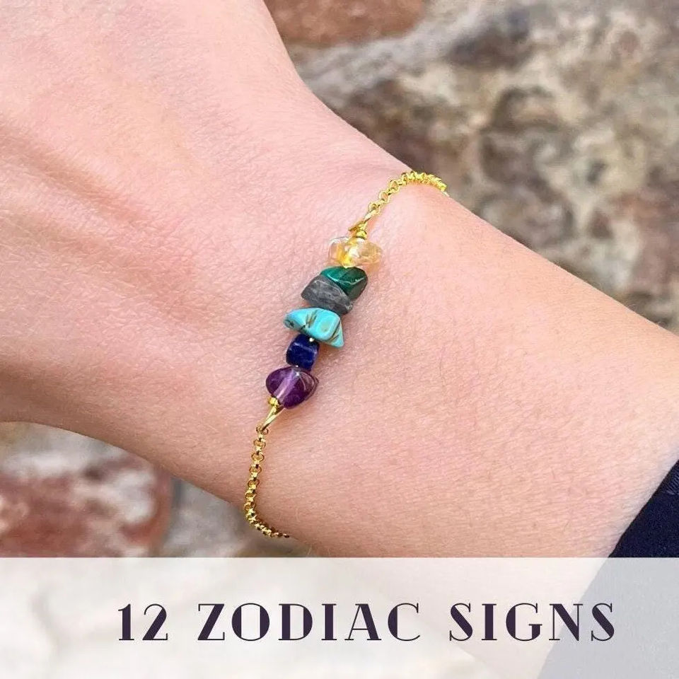 สร้อยข้อมือหินบำบัด 12 ราศี พร้อมสายสแตนเลส ของขวัญวันเกิดสำหรับสาวๆ