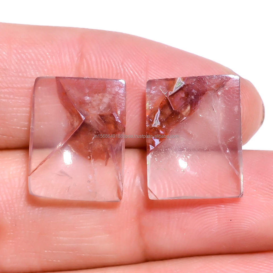 พลอยควอทซ์ทรงหลังเบี้ยทรงสี่เหลี่ยมหลวมสีส้มสุดพรีเมี่ยมสำหรับทำเครื่องประดับเป็นของขวัญรูปทรงสี่เหลี่ยมผืนผ้าเรียบ