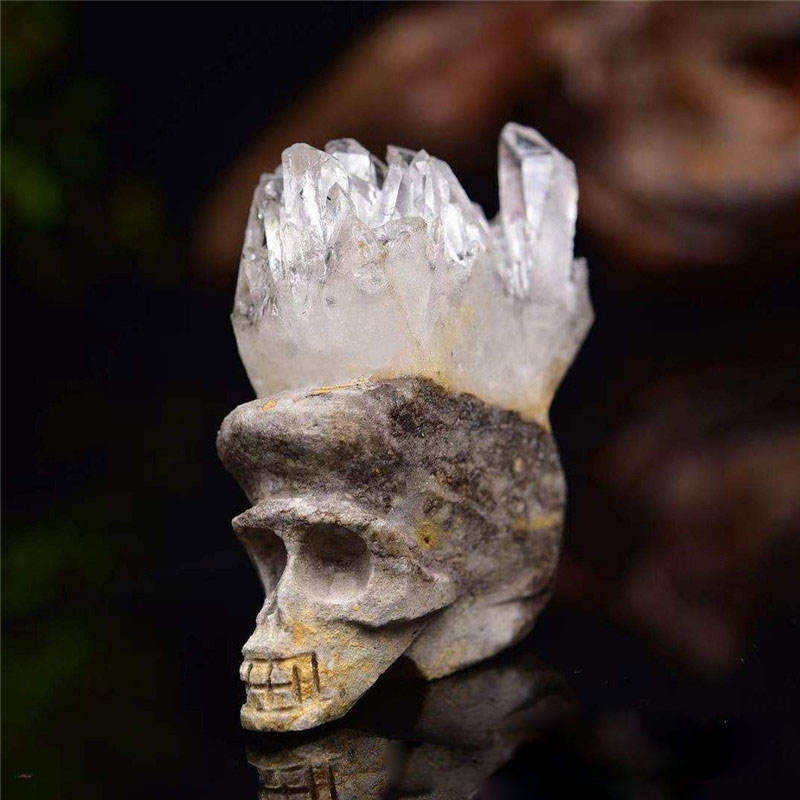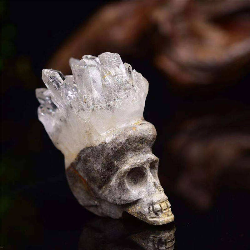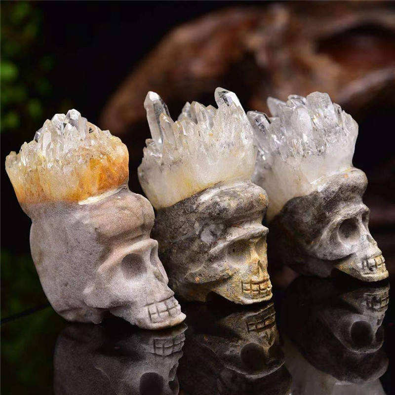 หินคริสตัลธรรมชาติบำบัดรูปปั้นหัวกะโหลกเรกิรูปปั้นแกะสลักด้วยมือธรรมชาติหินควอตซ์ธรรมชาติคริสตัลธรรมชาติกะโหลกศีรษะ
