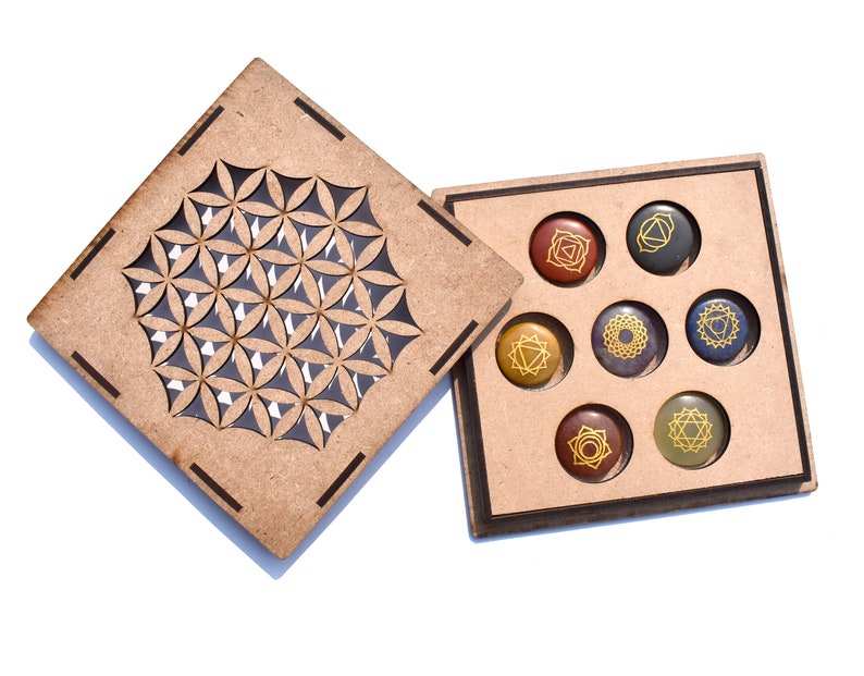 ชุดสัญลักษณ์แกะสลักทรงกลม,พร้อมกล่องไม้ชุดกล่องทำสมาธิหินทรงกลมจักระเจ็ดตัว