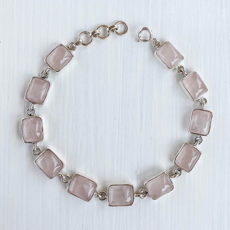 สร้อยข้อมือโรสควอตซ์สร้อยข้อมืออัญมณีสีเงิน