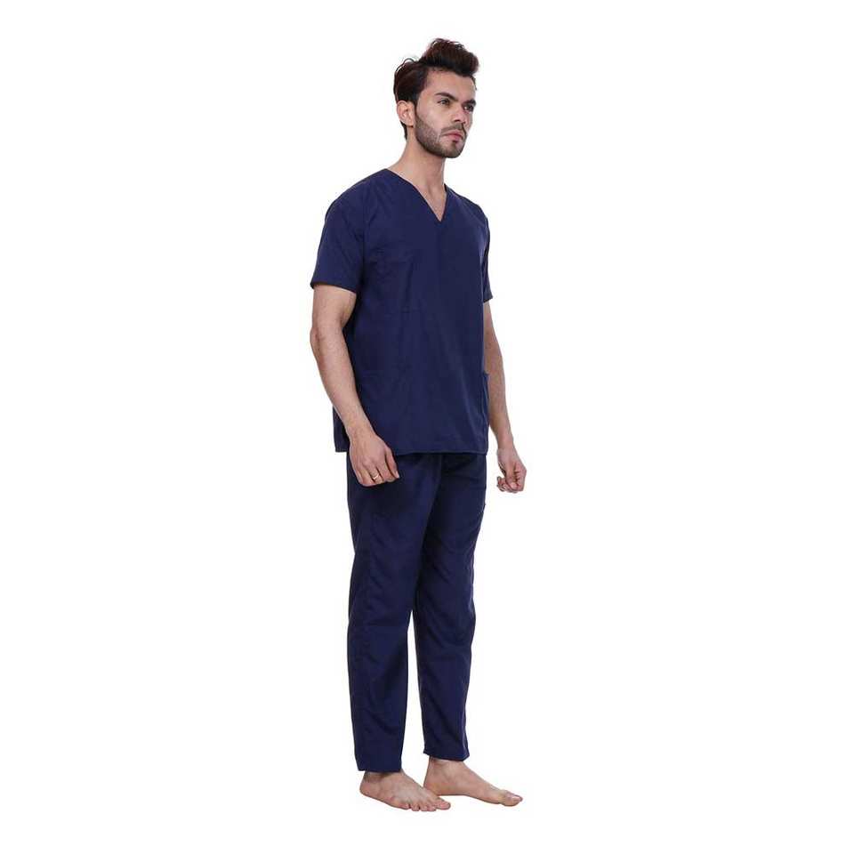 ชุดสูทสครับสำหรับผู้ชายและผู้หญิงชุดเครื่องแบบโรงพยาบาลทำจากวัสดุแท้ดูแลสุขภาพสีทึบ