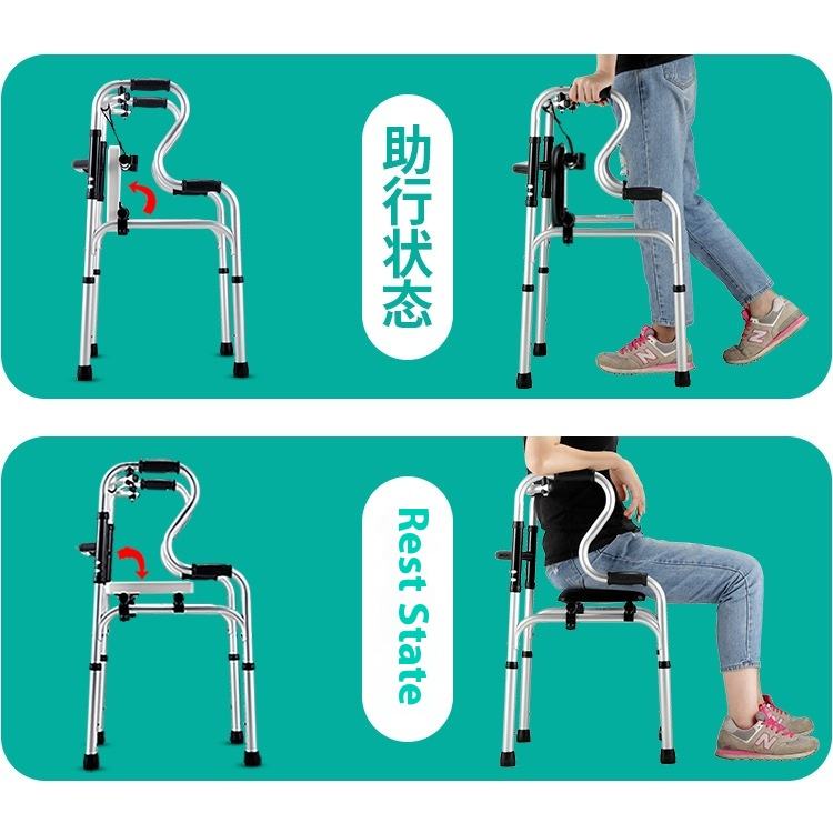 รถเข็นหัดเดินพับได้ง่ายสำหรับผู้สูงอายุอุปกรณ์ช่วยฝึกเคลื่อนที่ช่วยมีที่นั่งดูแลสุขภาพที่บ้าน