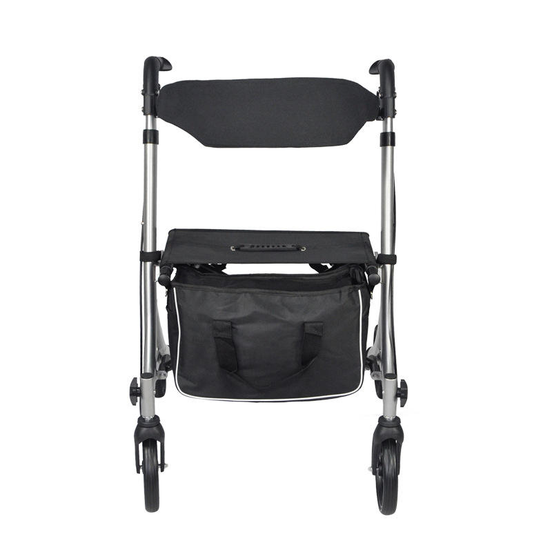 รถเข็นหัดเดินพับได้ง่ายสำหรับผู้สูงอายุอุปกรณ์ช่วยฝึกเคลื่อนที่ช่วยมีที่นั่งดูแลสุขภาพที่บ้าน