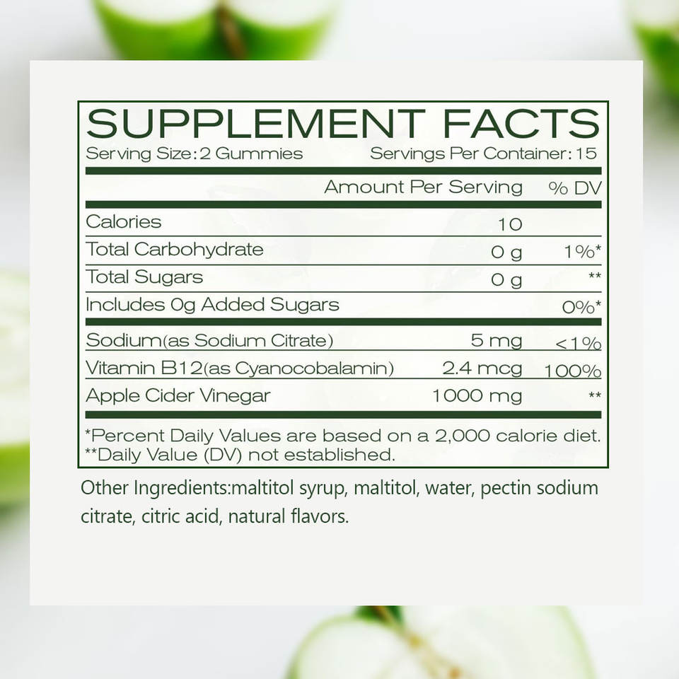 ส่วนผสมหลัก:วิตามินบี-12, โซเดียม, น้ำส้มสายชูแอปเปิ้ลไซเดอร์