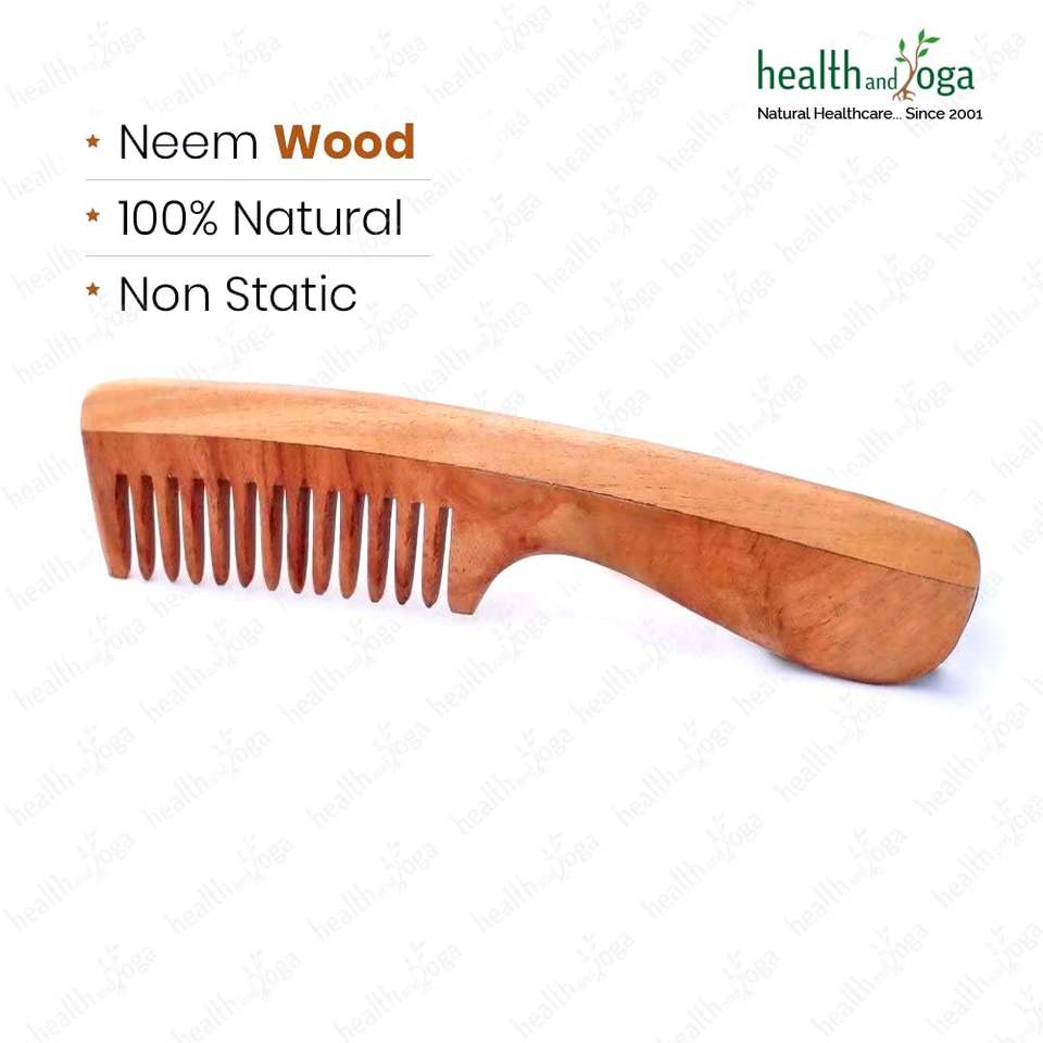 หวีไม้สะเดา HealthAndYoga PureTress ขนาดใหญ่ ซี่กว้าง พร้อมด้ามจับ ทนทาน เป็นมิตรกับสิ่งแวดล้อม สำหรับผู้ชาย ใช้ในบ้าน นำเข้าจากอินเดีย