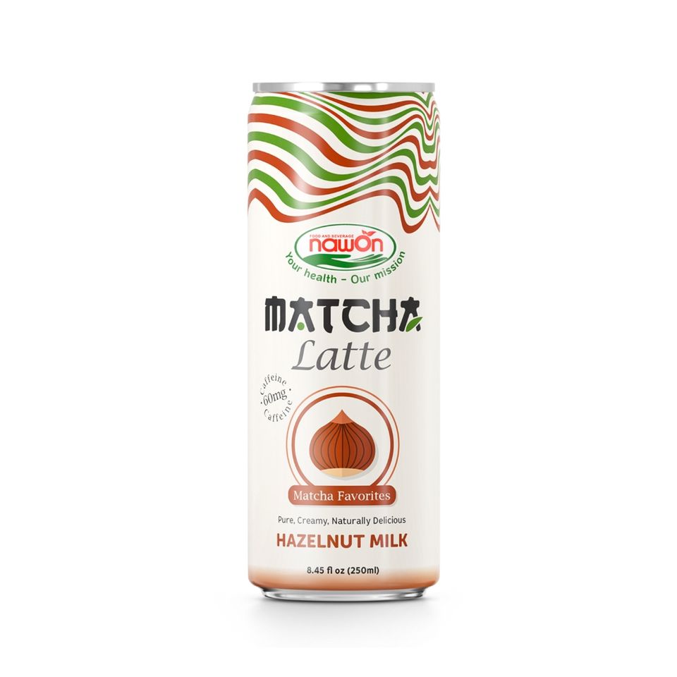 เครื่องดื่มมัทฉะเพื่อสุขภาพผสมนมเฮเซลนัท ขนาด 250 มล. รับผลิตแบบ OEM แบรนด์ส่วนตัว ผงมัทฉะลาเต้ ตัวอย่างฟรี ผู้ผลิตเครื่องดื่มนาวอน