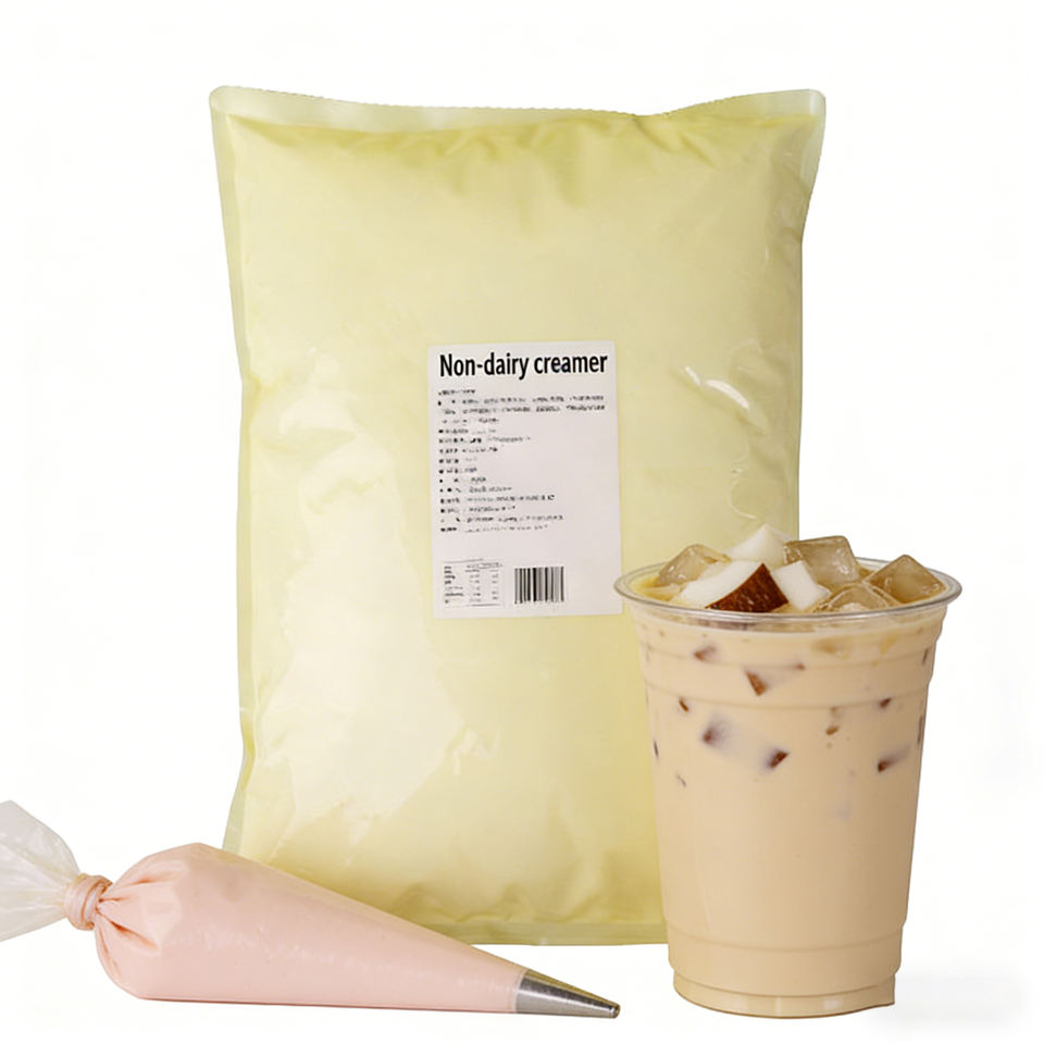 ครีมเทียมกาแฟเพื่อสุขภาพ ปราศจากนม ผลิตจากพืช ปราศจากโคเลสเตอรอล สำหรับร้านชานมและร้านกาแฟ บรรจุถุง 25 กก. รับผลิตตามความต้องการ