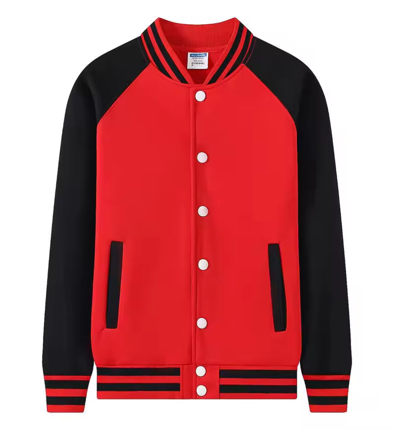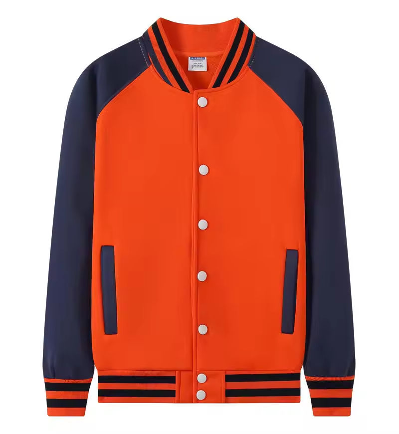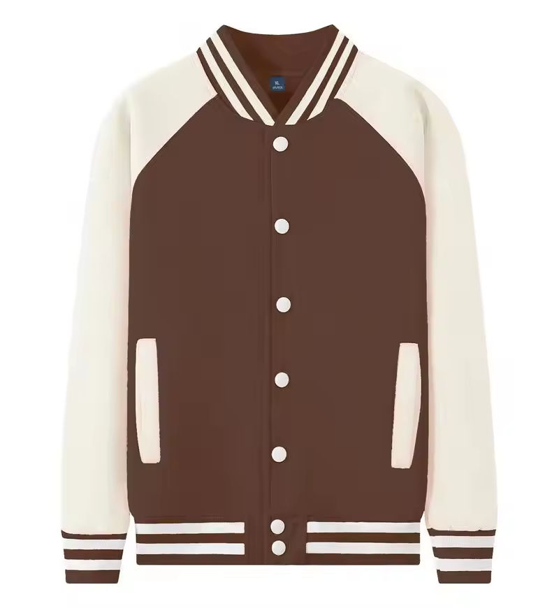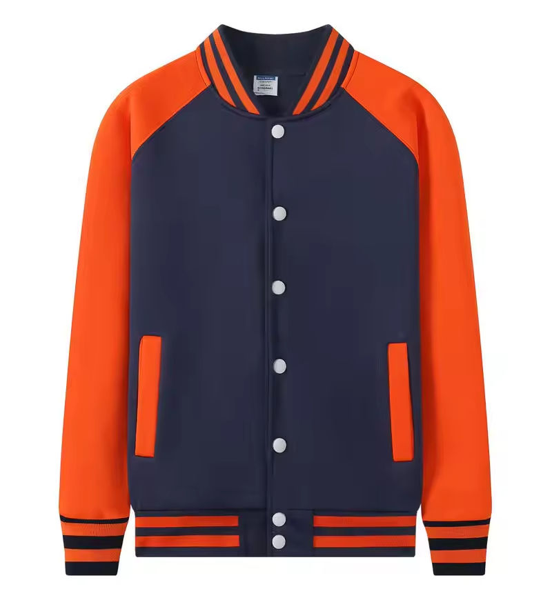 แจ็กเก็ตเบสบอลผ้าฝ้ายออร์แกนิกของผู้ชายเสื้อแจ็คเก็ตขนแกะสีเข้ากันลำลอง