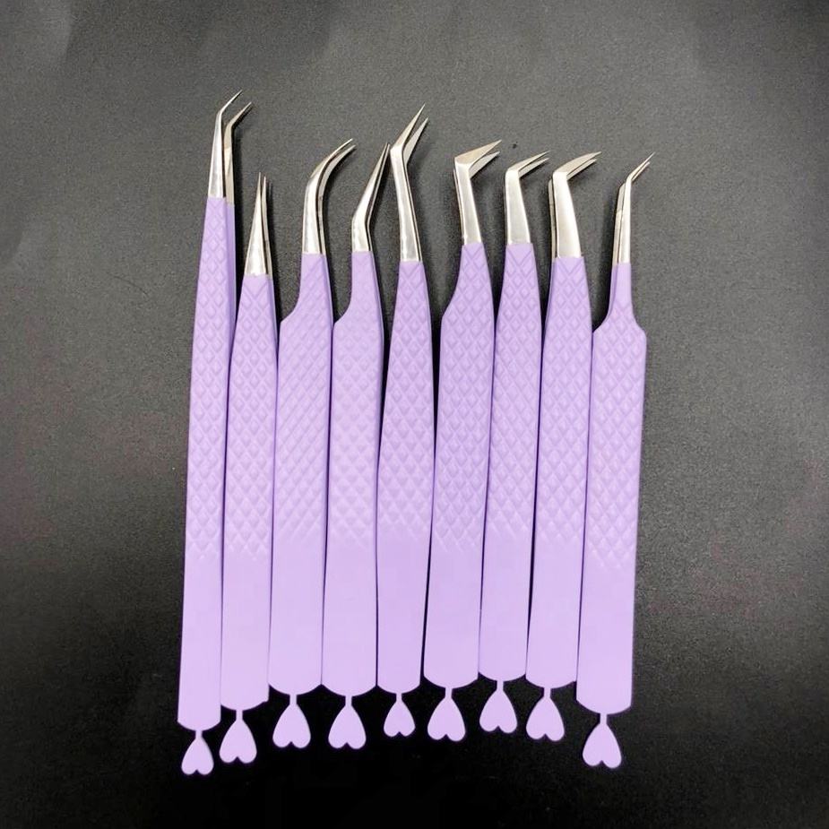 แหนบต่อขนตาสีม่วงอ่อนได้ยินออกแบบโลโก้แบบยั่งยืนคีมหนีบคิตตี้ขายส่ง