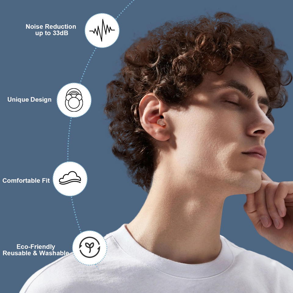 ที่อุดหูแบบซิลิโคน ป้องกันเสียงรบกวน ลดเสียง ใช้ซ้ำได้ เหมาะสำหรับว่ายน้ำ นอนหลับ