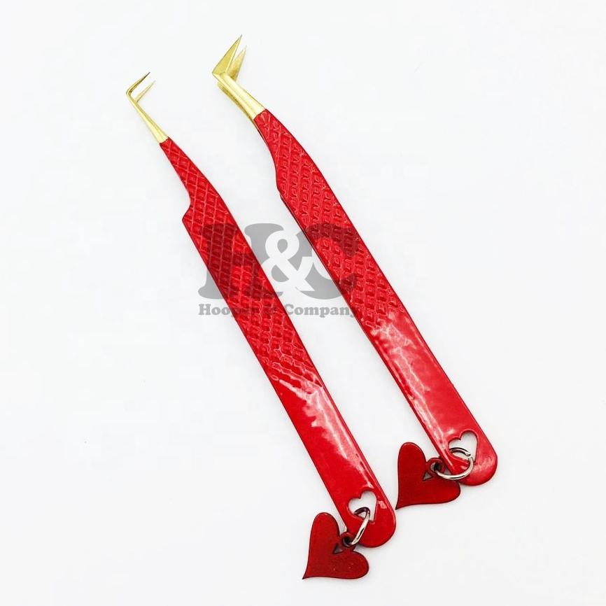 ที่หนีบขนตาปลอมรูปหัวใจแบบมืออาชีพโลโก้ขนมิงค์สีแดงกันแม่เหล็กทนทาน