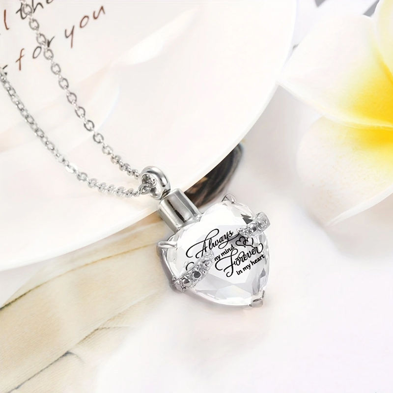 สร้อยคอจี้รูปหัวใจสำหรับใส่เถ้ากระดูก พร้อมชุดอุปกรณ์เติมเถ้ากระดูก - อยู่ในใจฉันเสมอ ตลอดไปในหัวใจของฉัน