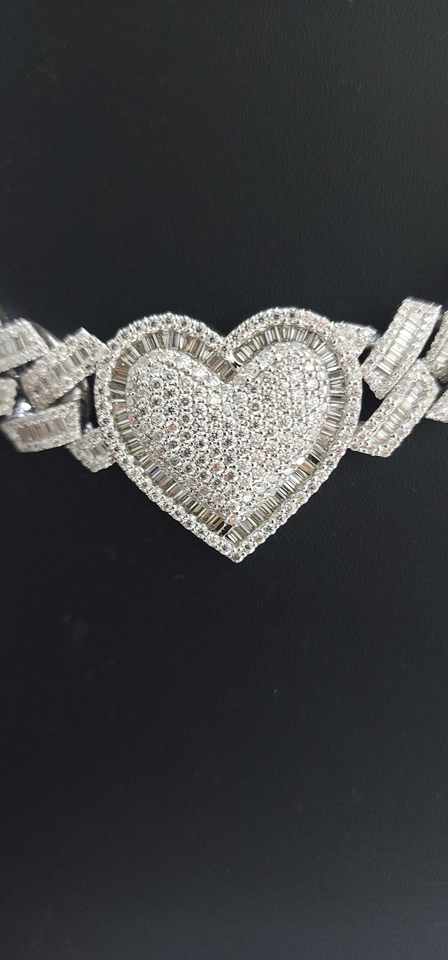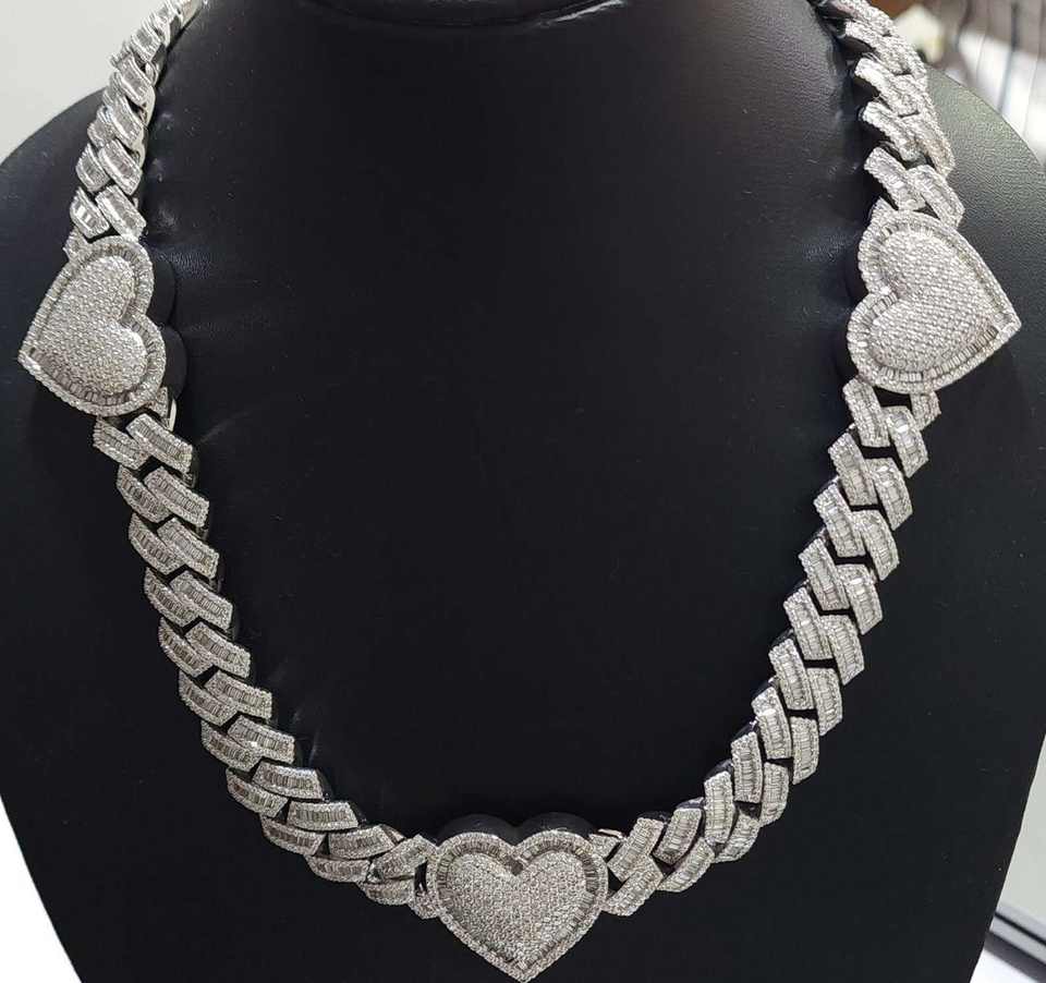 สร้อยคอแบบ Cuban Link รูปหัวใจ เงินแท้ 925 ประดับเพชรโมอิสซาไนต์ สไตล์ฮิปฮอป บลิงๆ เครื่องประดับสำหรับแร็ปเปอร์ ใส่ไปงานปาร์ตี้ ของขวัญ