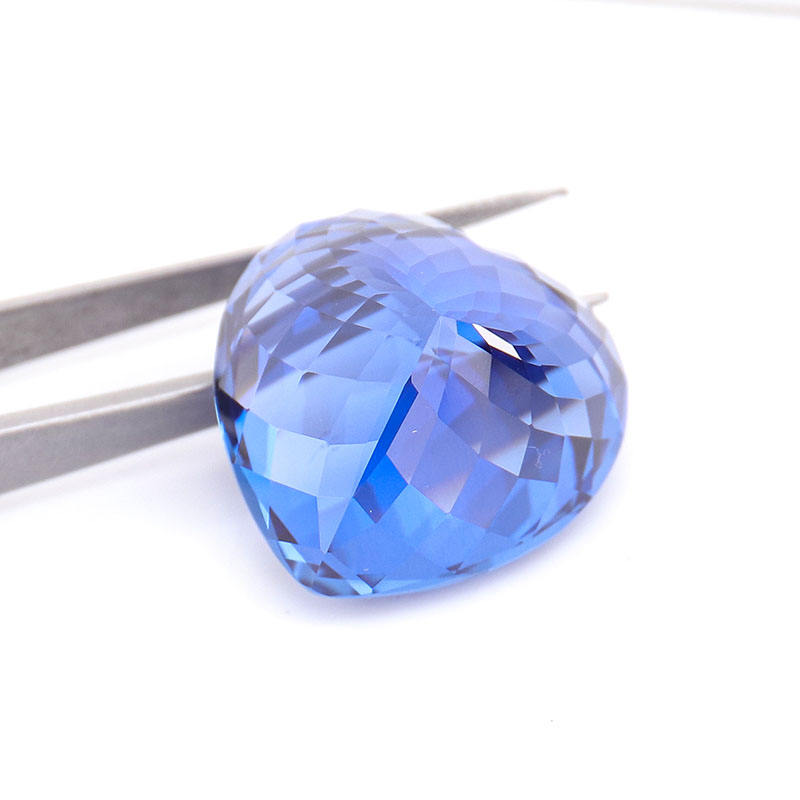 พลอยแซฟไฟร์สีน้ำเงินตัดรูปหัวใจอัญมณีอัญมณีอัญมณีหลวมที่ออกแบบเองสำหรับการทำเครื่องประดับอัญมณีพลอยสังเคราะห์สำหรับการปลูกในห้องปฏิบัติการ