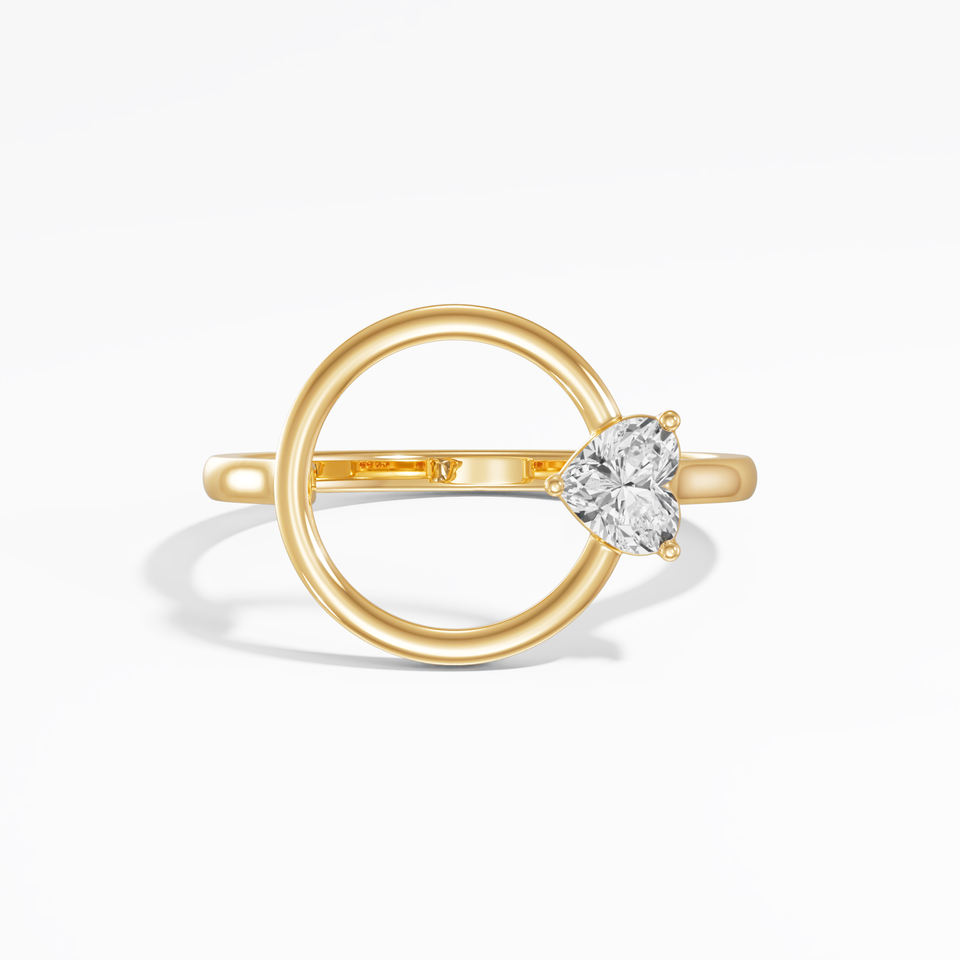 แหวนหมั้นเพชรแบบโซลิแทร์สำหรับปลูกในแล็บหัวใจ0.28การออกแบบคราส CTW 14K 18K สีเหลืองทอง