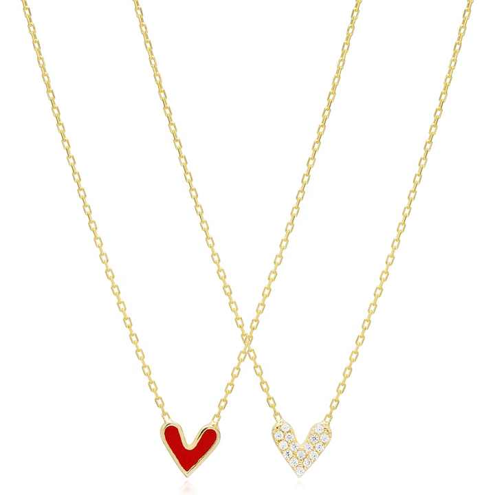สร้อยคอประดับหัวใจสองด้านสีแดง CZ จี้เงิน925ผู้หญิงแฟชั่นเครื่องประดับเงินสเตอร์ลิงเครื่องประดับอัญมณีชั้นดี