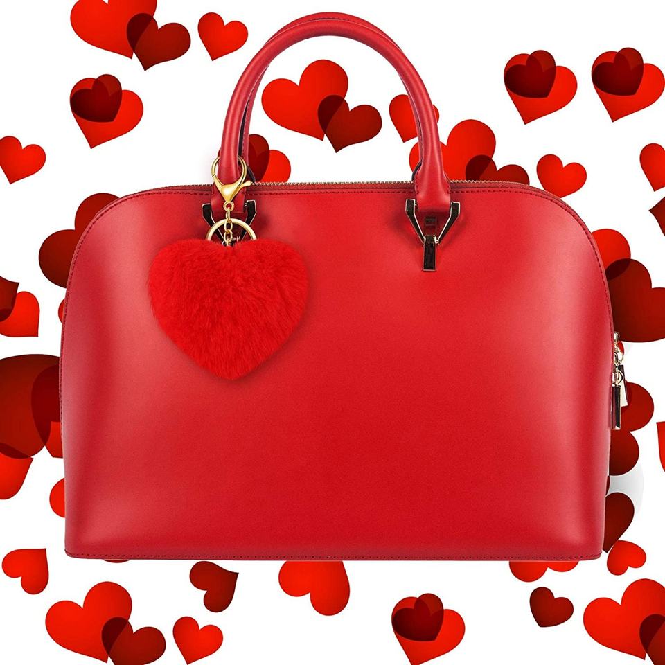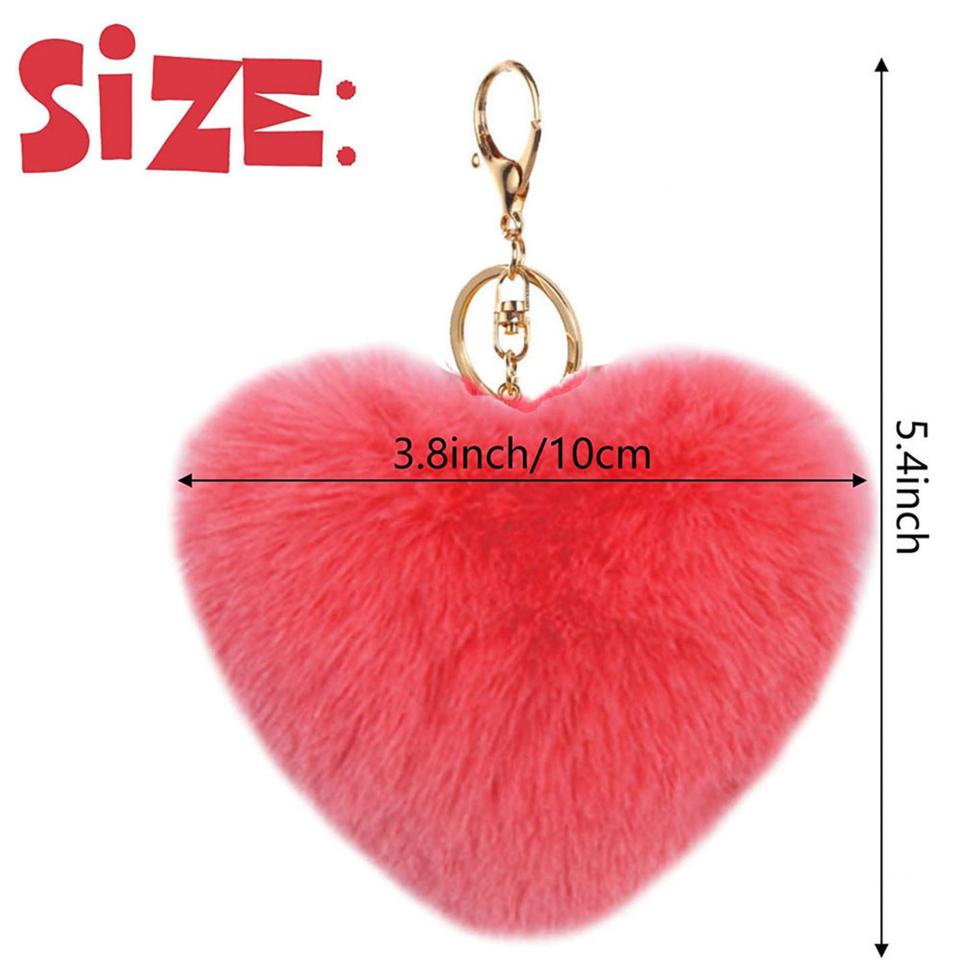 พวงกุญแจขนเฟอร์รูปหัวใจพร้อมพู่ขนฟูสำหรับสาวๆ ผู้หญิง พวงกุญแจขนกระต่ายเทียม