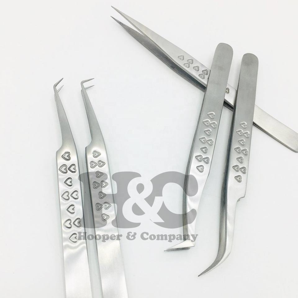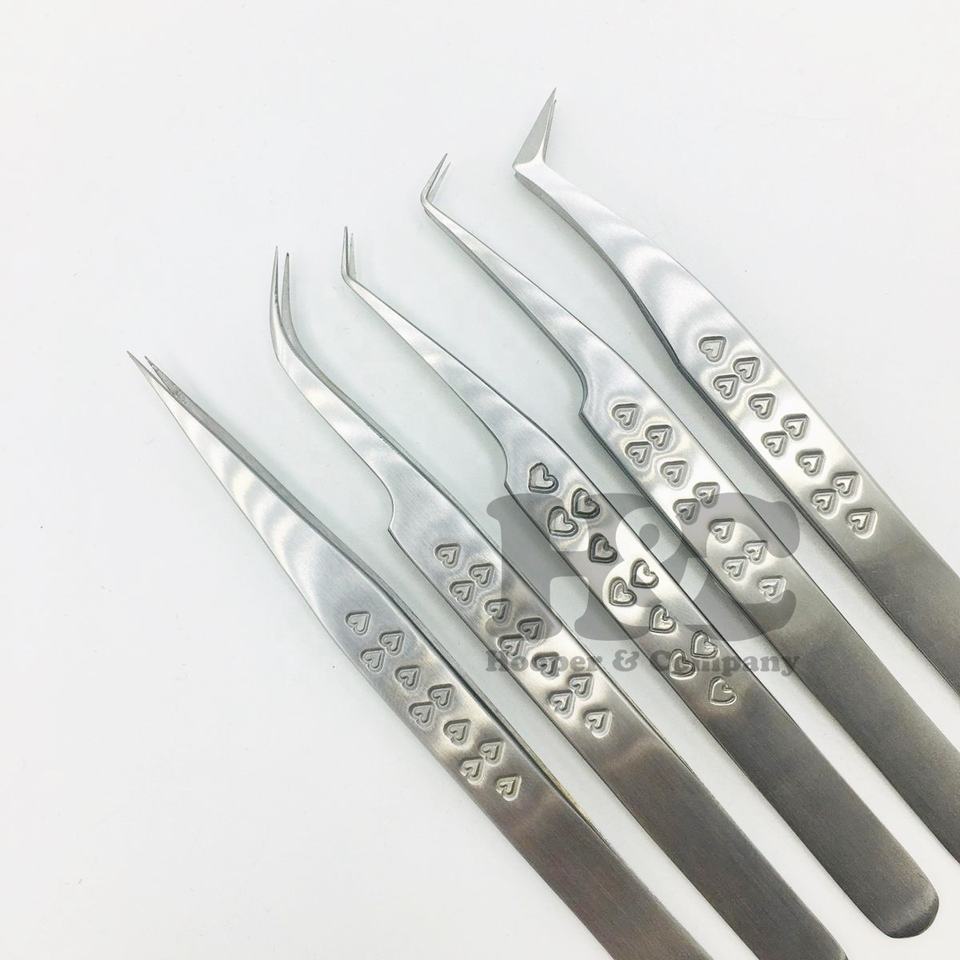 แหนบแบบใหม่ ด้ามจับรูปหัวใจ แหนบคุณภาพสูง สแตนเลสสีเงิน ชุดแหนบต่อขนตา โลโก้ mink
