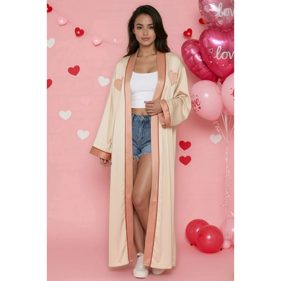 ชุดกิโมโนผ้าซาตินแขนยาว คอระบาย แต่งโลโก้ตามสั่ง ประดับด้วยผ้าปะติดสีตัดกัน ลายพิมพ์ลำลองสำหรับงานปาร์ตี้ ฟรีไซส์สำหรับฤดูร้อน