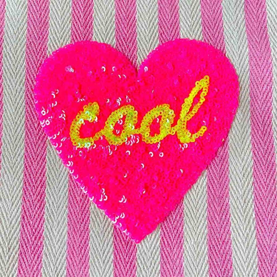 กระเป๋าโท้ทรูปตัวอักษรหัวใจพร้อมฐานผ้าใบลายทาง