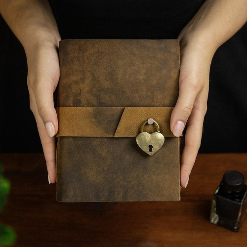 ชื่อผลิตภัณฑ์:สมุดบันทึกปกหนังสีน้ำตาลอ่อนสายล็อคหัวใจ