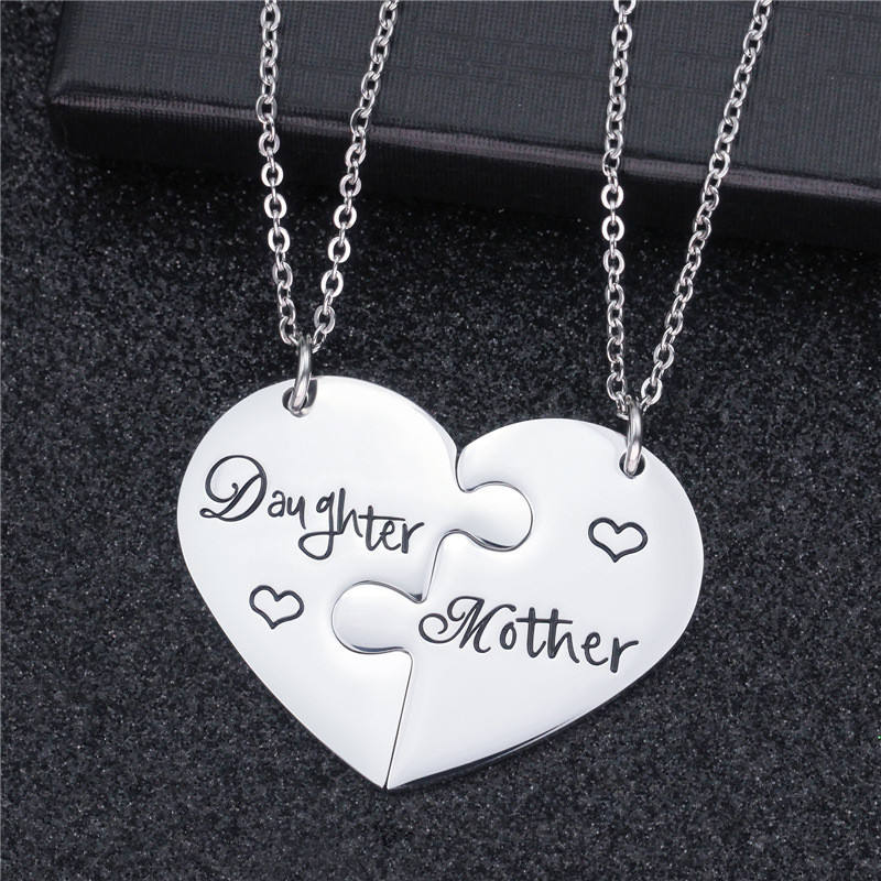 ชุดสร้อยคอหัวใจเข้ากันมากที่สุดสำหรับลูกสาวแม่2คน/แม่ของเธอของขวัญสร้อยคอหัวใจปริศนาสำหรับผู้หญิงแม่