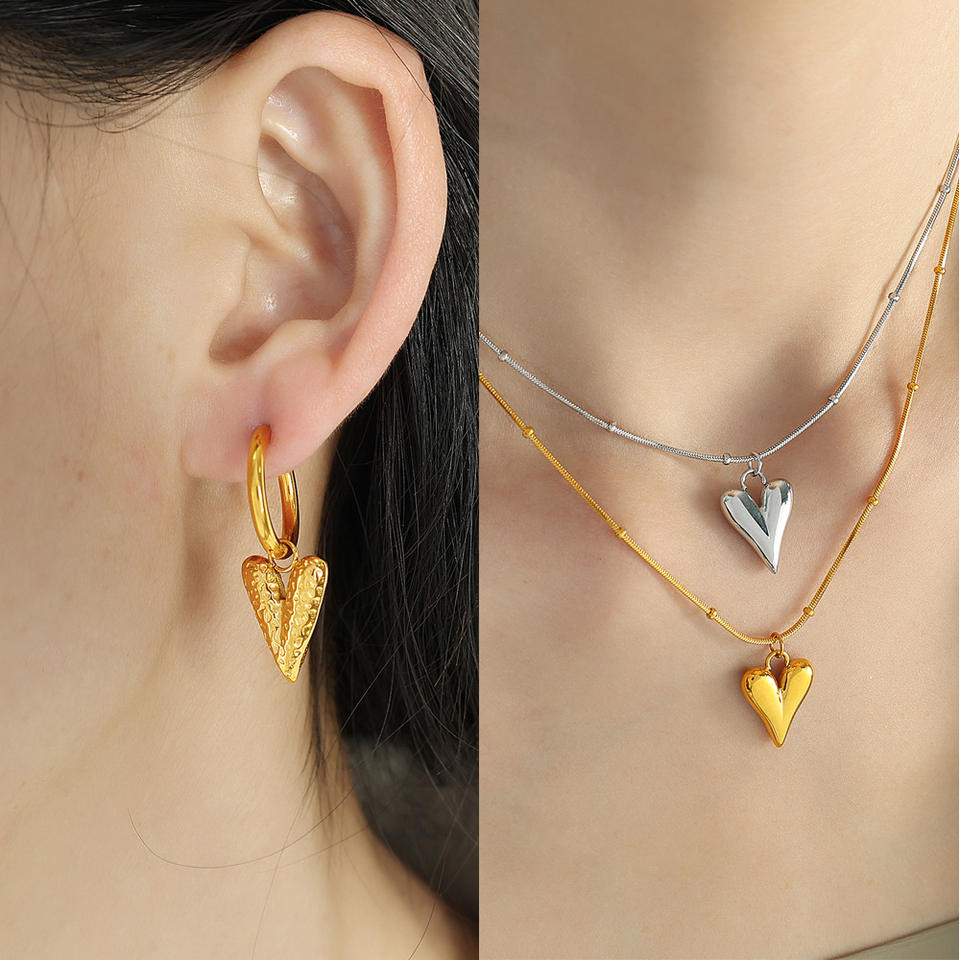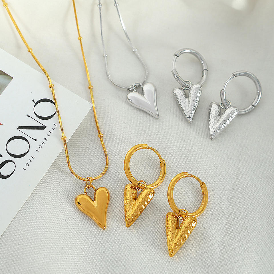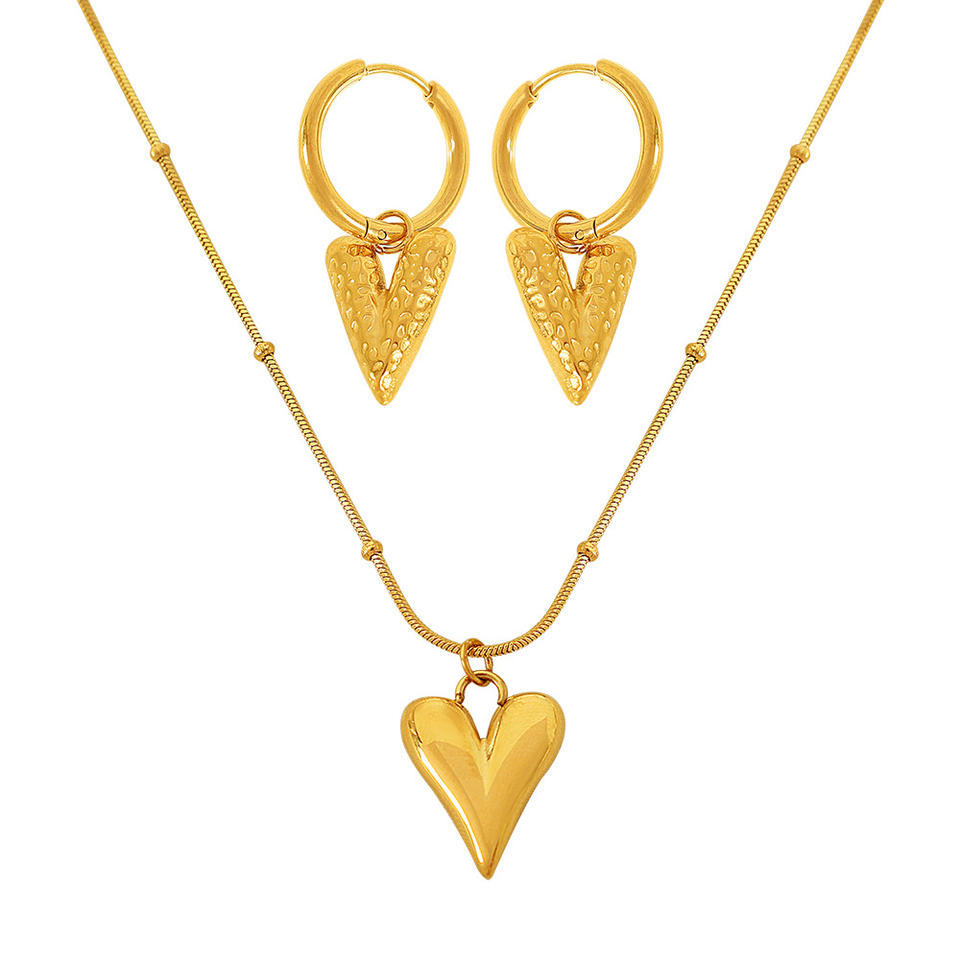 ชุดสร้อยคอและต่างหูรูปหัวใจ โลหะผสมสังกะสี ของขวัญสำหรับผู้หญิง เครื่องประดับ โซ่คล้องไหปลาร้า ดีไซน์ลายหัวใจ