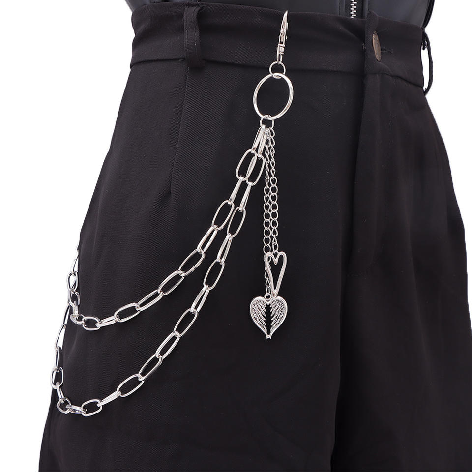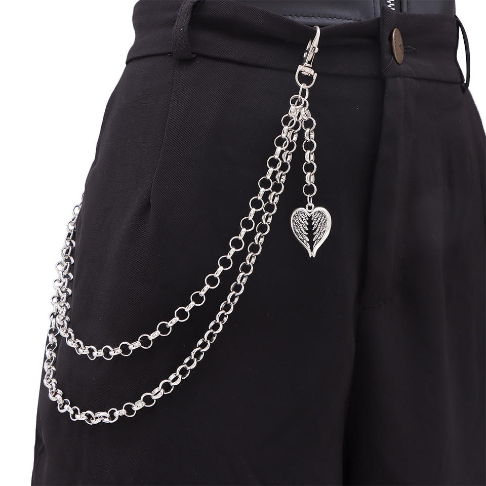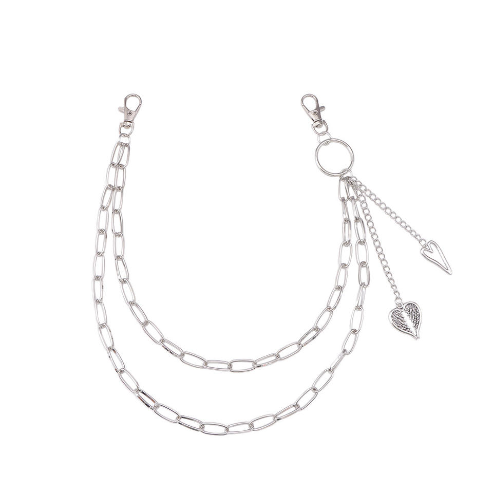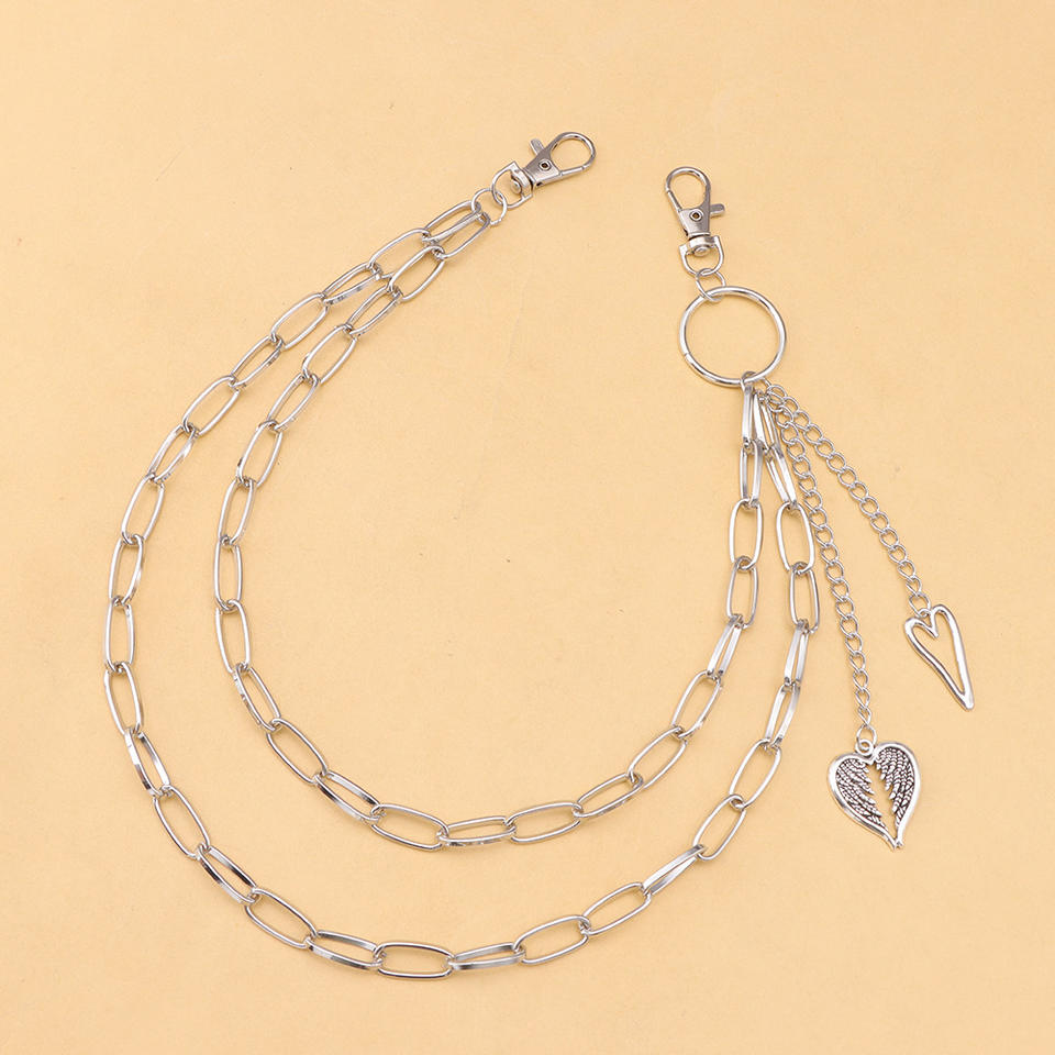 จี้รูปหัวใจ โซ่คาดเอวโลหะสองชั้น เครื่องประดับแฟชั่นสำหรับทุกเพศ สวมใส่ได้ทุกวัน โลหะผสมสังกะสี สไตล์ฮิปฮอป
