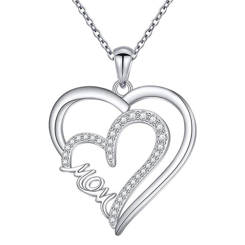สร้อยคอจี้รูปหัวใจเงิน 925 ชุบโรเดียมคริสตัลไรน์สโตนผู้หญิงโรแมนติกของขวัญกล่องโซ่