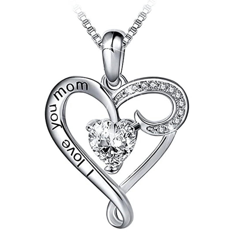 สร้อยคอจี้รูปหัวใจเงิน 925 ชุบโรเดียมคริสตัลไรน์สโตนของขวัญสำหรับผู้หญิงเครื่องประดับโรแมนติกกล่องโซ่ฉันรักแม่