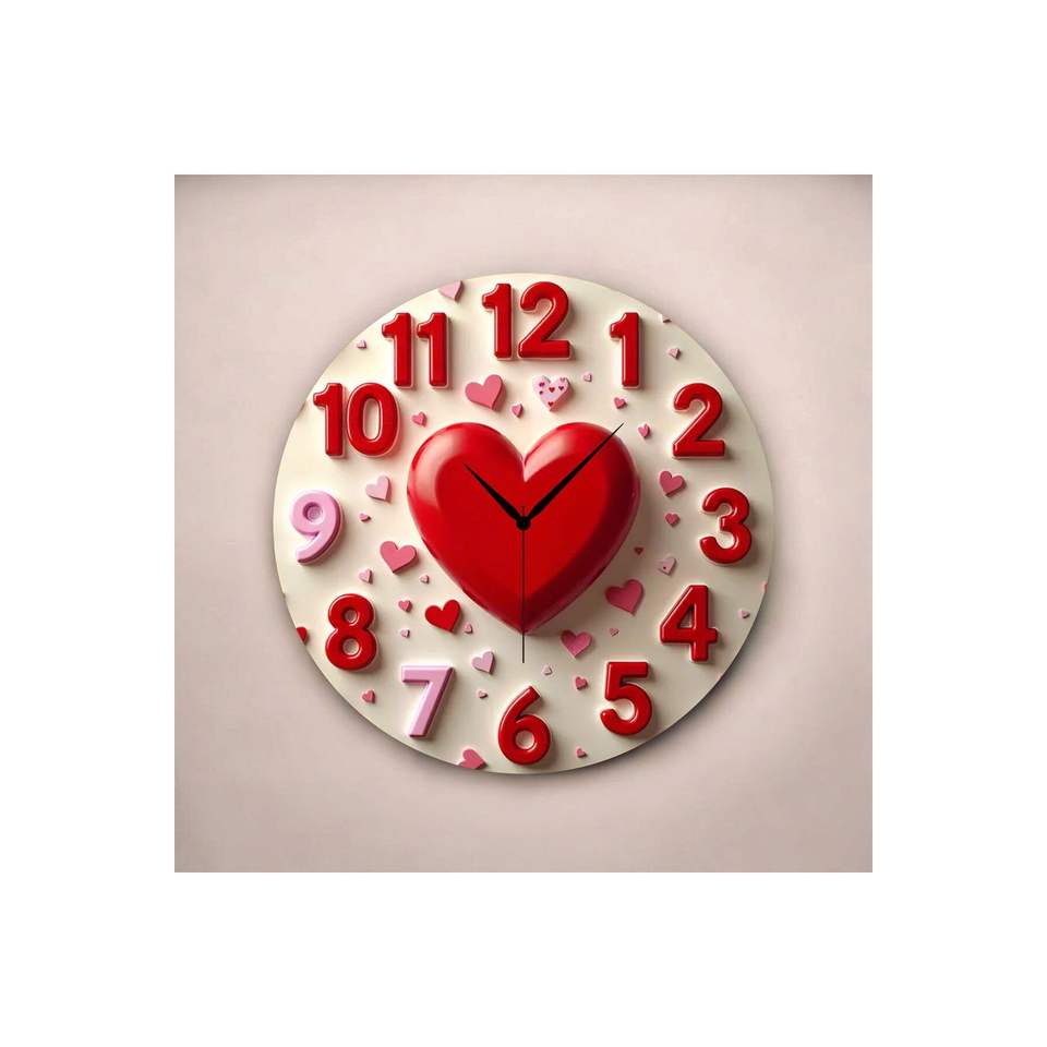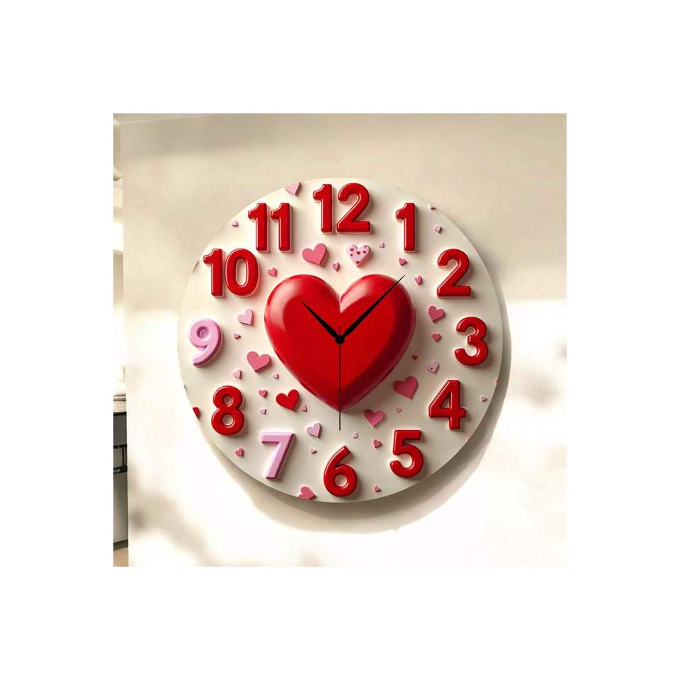 นาฬิกาแขวนผนังไม้ทรงกลมลายหัวใจเงียบสงบ ขนาด 45x45 ซม. พร้อมตัวเลข มองเห็นได้ชัดเจน ของขวัญสุดคลาสสิก