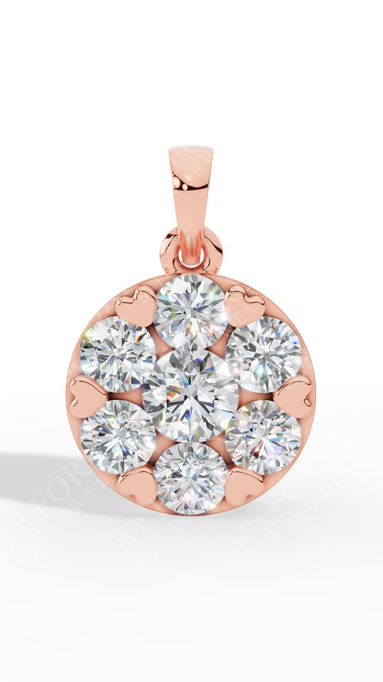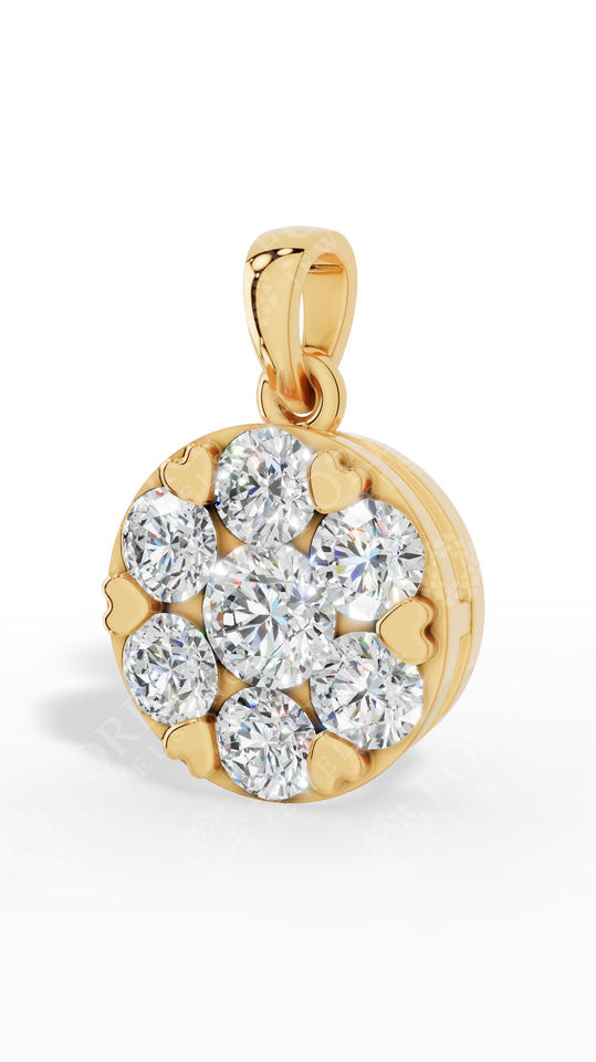 จี้รูปหัวใจประดับเพชรทรงกลมเจียระไนแบบบริลเลียนท์ ฝังแบบคลัสเตอร์ เพชรเลี้ยงในห้องปฏิบัติการ ทอง 10K สีทอง ไม่มีสี ความสะอาดระดับ VVS สร้อยคอโรแมนติกแบบโซลิแทร์