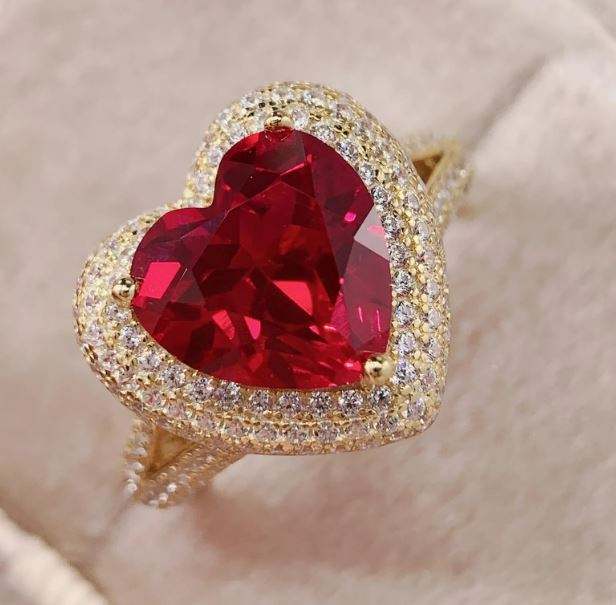 แหวนตราประทับรูปหัวใจประดับเพชรรูปหัวใจทรงหัวใจ 14K ทองคำแท้ แหวนหมั้น แหวนแทนใจ แหวนประจำเดือนเกิดเดือนกรกฎาคม ของขวัญสำหรับเธอ