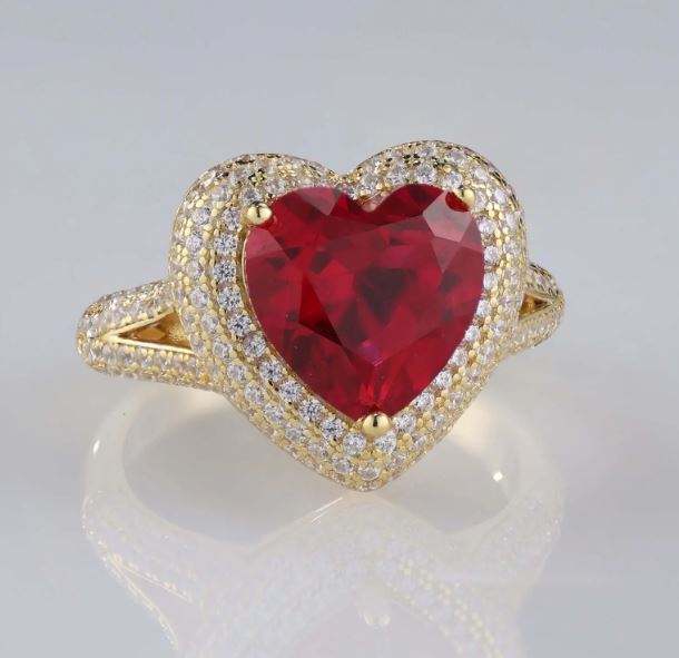 ชื่อสินค้า:แหวนตราทองคำแท้ 14K ประดับทับทิมทรงหัวใจและเพชร