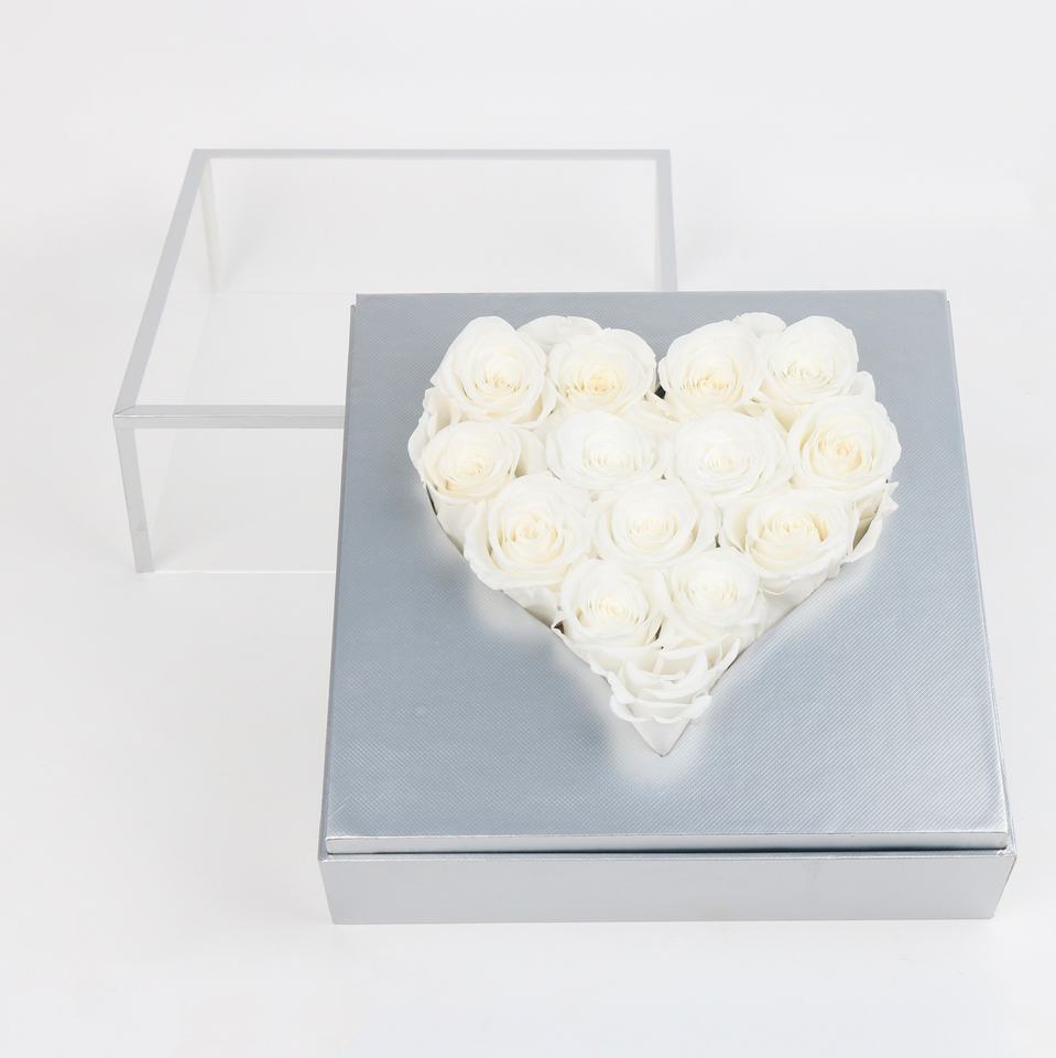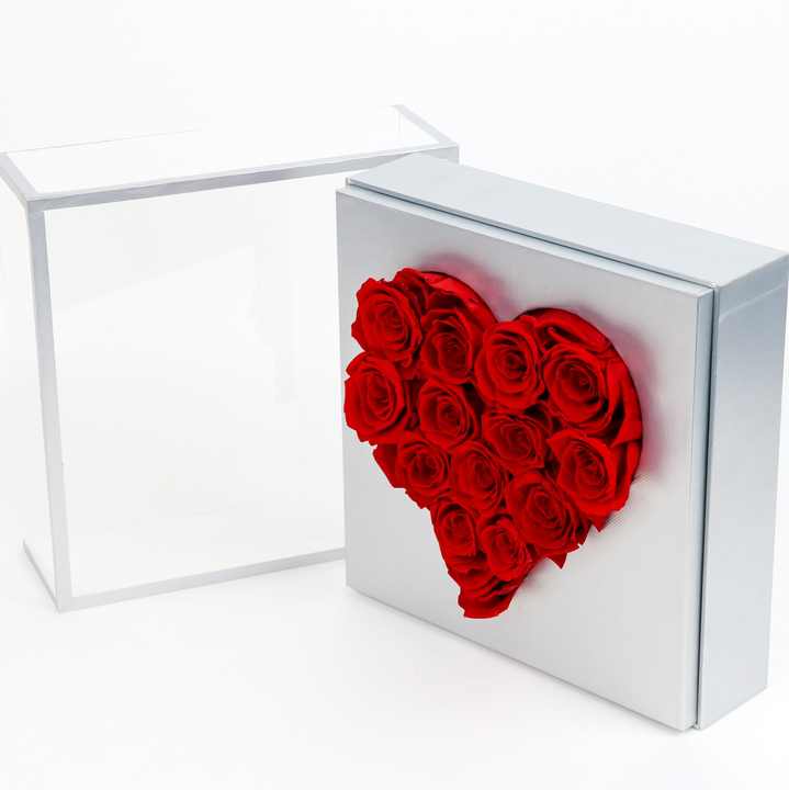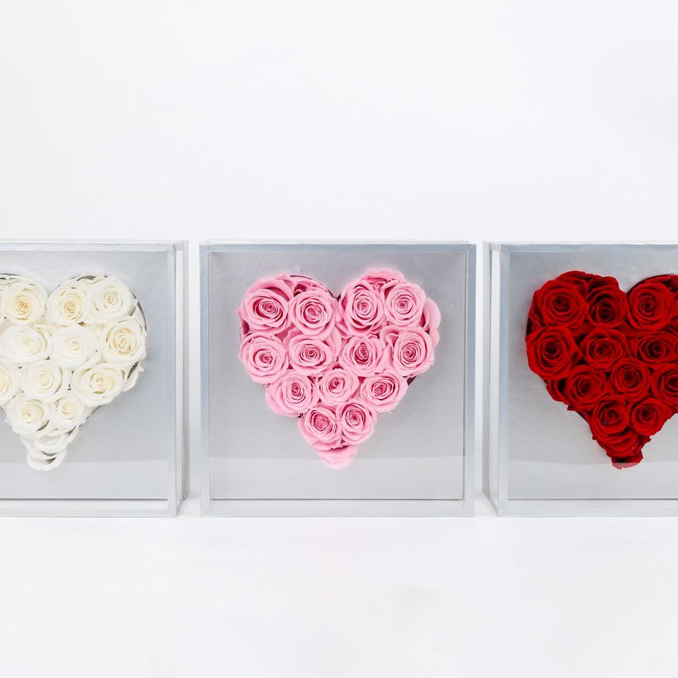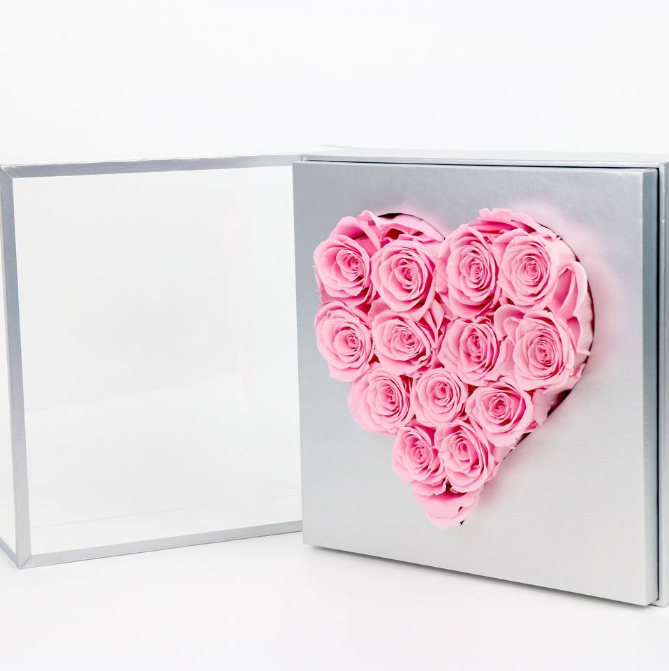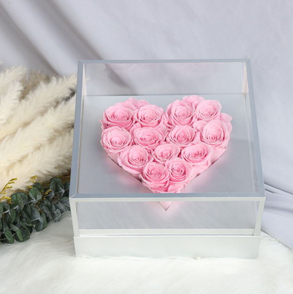 กล่องอะคริลิครูปหัวใจที่เก็บรักษาไว้ใหม่จัดดอกไม้ของขวัญที่เก็บรักษาไว้กุหลาบสำหรับวันวาเลนไทน์